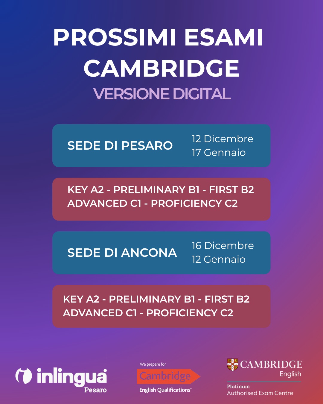 Una delegazione del nostro Centro Esami Cambridge Platinum รจ stata [...]